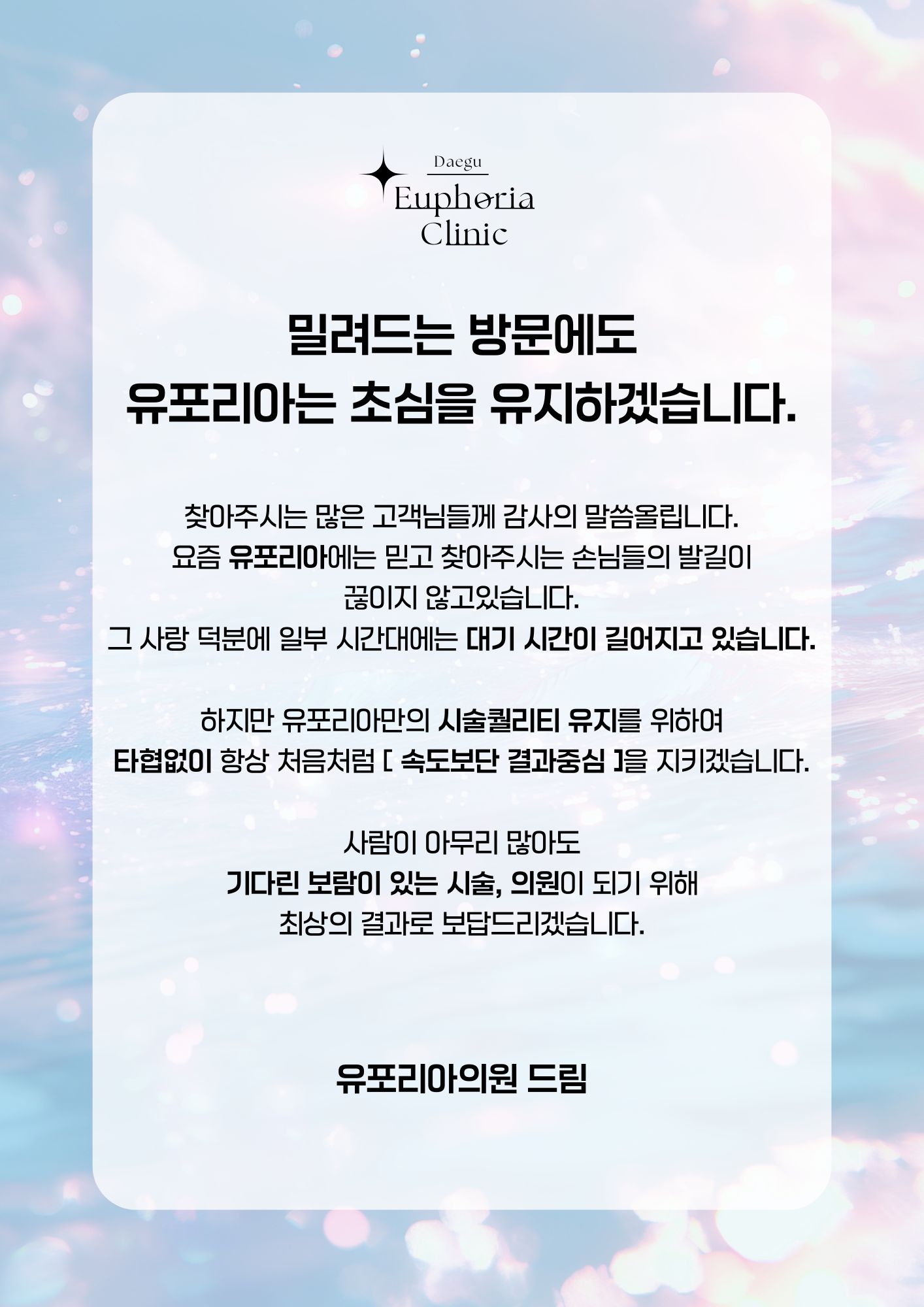 유포리아의원의 모든 시술들은 대표원장이 직접 경험해본 자신있는 시술들로 최선의 결과를 낼수 있도록 구성하였습니다